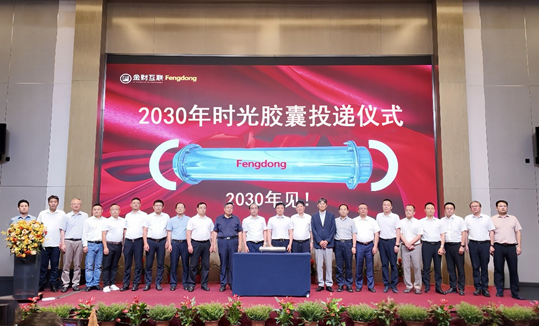 表彰环节后,一个充满仪式感与未来期许的环节将大会推向高潮——“新五年时光胶囊投递仪式”。在朱文明董事长和朱小军总经理的共同见证下,各成员企业总经理庄严地将下一个五年目标依次投入时光胶囊中。这封存的不仅是一份份目标计划,更是全体丰东管理层对未来五年高质量发展的坚定信念与神圣契约。