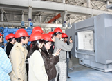 随后,学生们参观丰东智能化车间,工作人员还现场演示了智能系统如何根据订单需求调整工艺参数,直观展现了智能化生产在提升效率、减少人工误差方面的优势,让学生们对热处理行业的现代化发展有了更具象的认知。