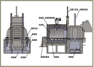◆淬火升降机采用双层结构,上层工件在冷室顶部缓冷时下层同时可以进出料。 (可选)